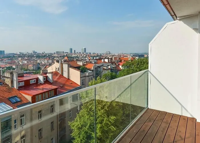 Stunning Modern 2Bedroom With Iconic View Prague apartment lies 2.6 km from the Baroque Clementinum Library and around a 5-minute ride from Náměstí Míru tube station. The spacious apartment with a terrace is located in close proximity to the Havlíček Gardens.